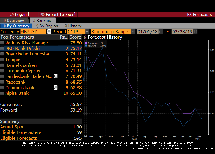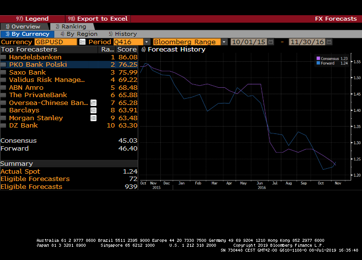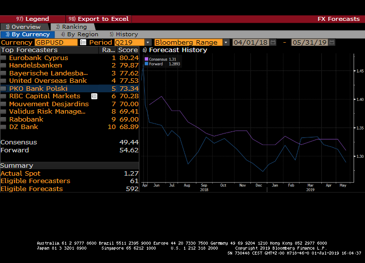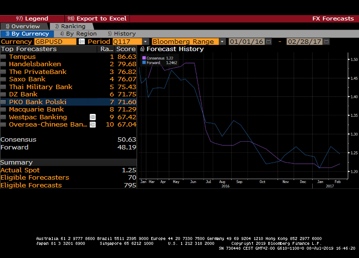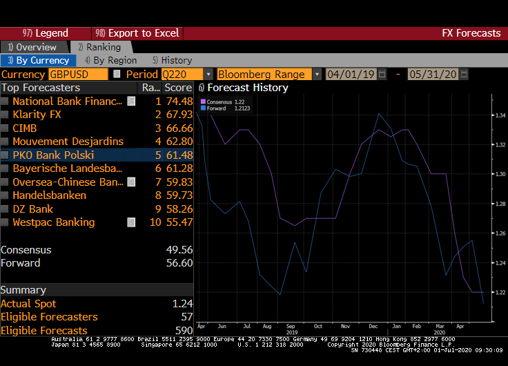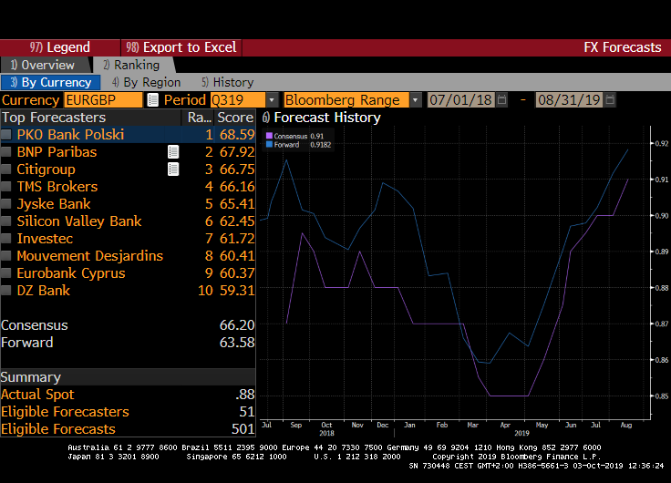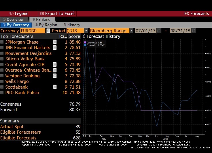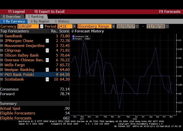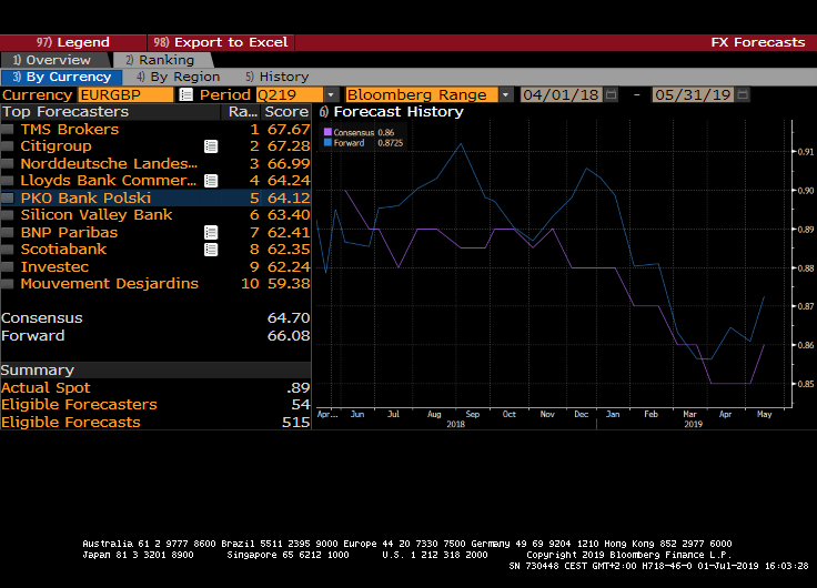 Bloomberg ranking prognoz kursu EUR/GBP: