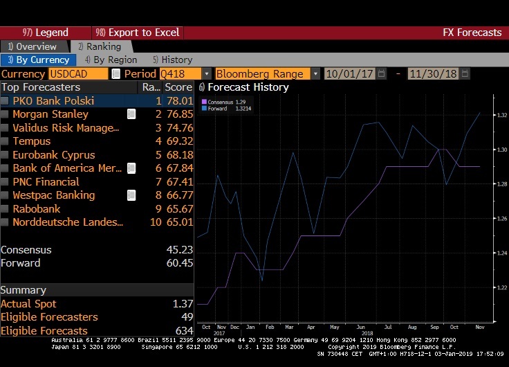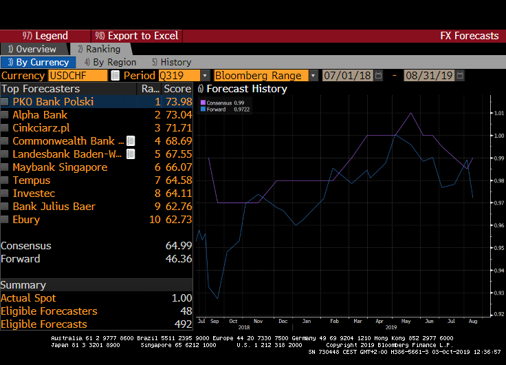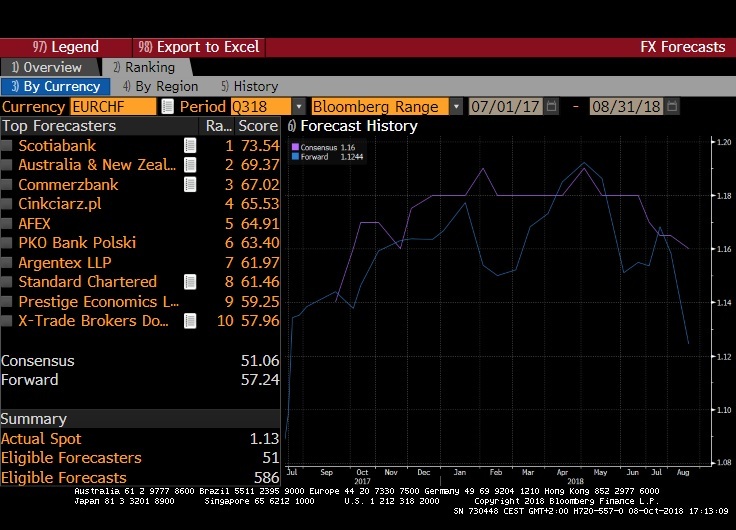 Bloomberg ranking prognoz kursu EUR/CHF: