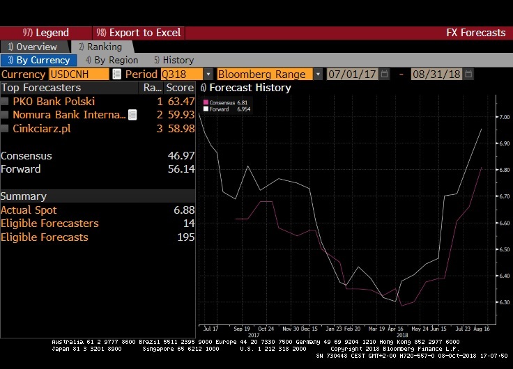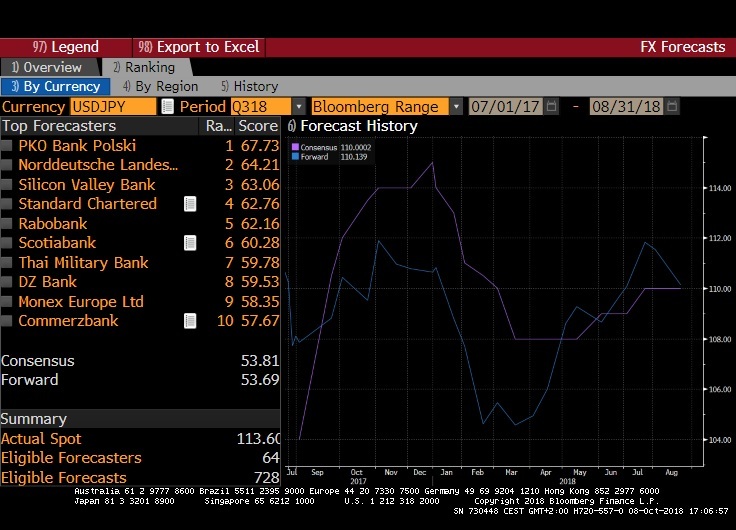 Bloomberg ranking prognoz koszyka głównych par walutowych (13 Majors):