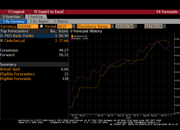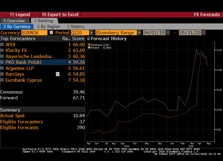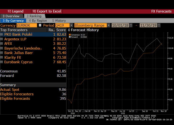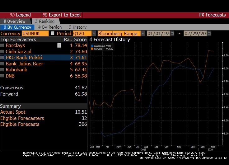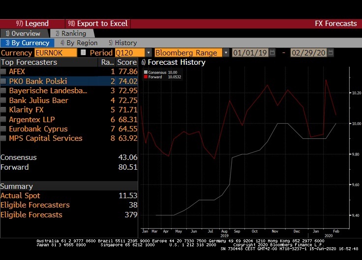Bloomberg ranking prognoz kursu EUR/NOK: